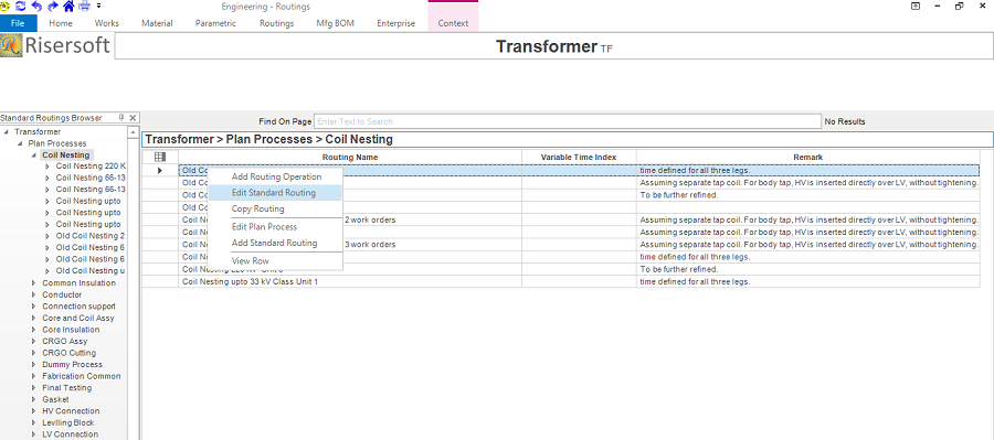 Click on Routings -> Plan Process->Right Click->Add Standard Routing.