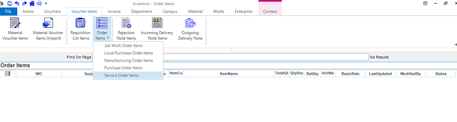 Click on Voucher Items -> Service Order Items.