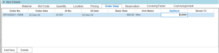 Click on Order Data tab. Click on Add New button. Select Oder Items list will appear. Select the order and click on OK.