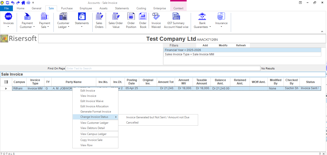 Change Invoice Status: