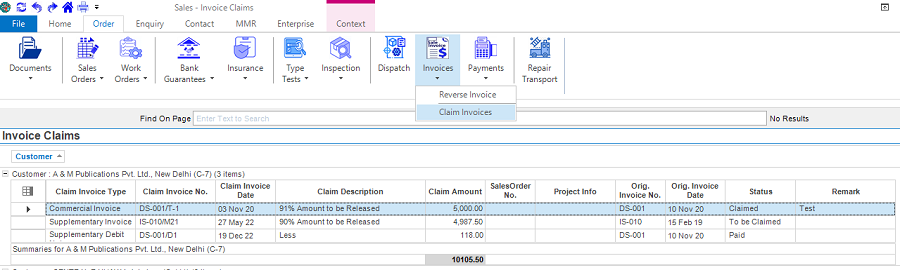 Click on Order -> Claim Invoices. Claim Invoice list will appear.
